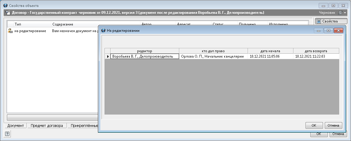 2. В открывшемся окне На редактировании будут представлены сведения о всех сеансах редактирования данного документа.