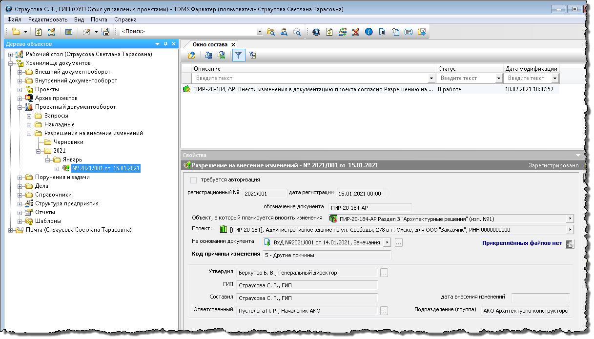 В одноименном подразделе хранятся все созданные в системе Разрешения на внесение изменений.