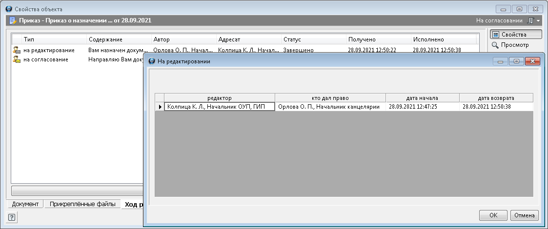 2. В открывшемся окне На редактировании будут представлены сведения о всех сеансах редактирования данного документа.