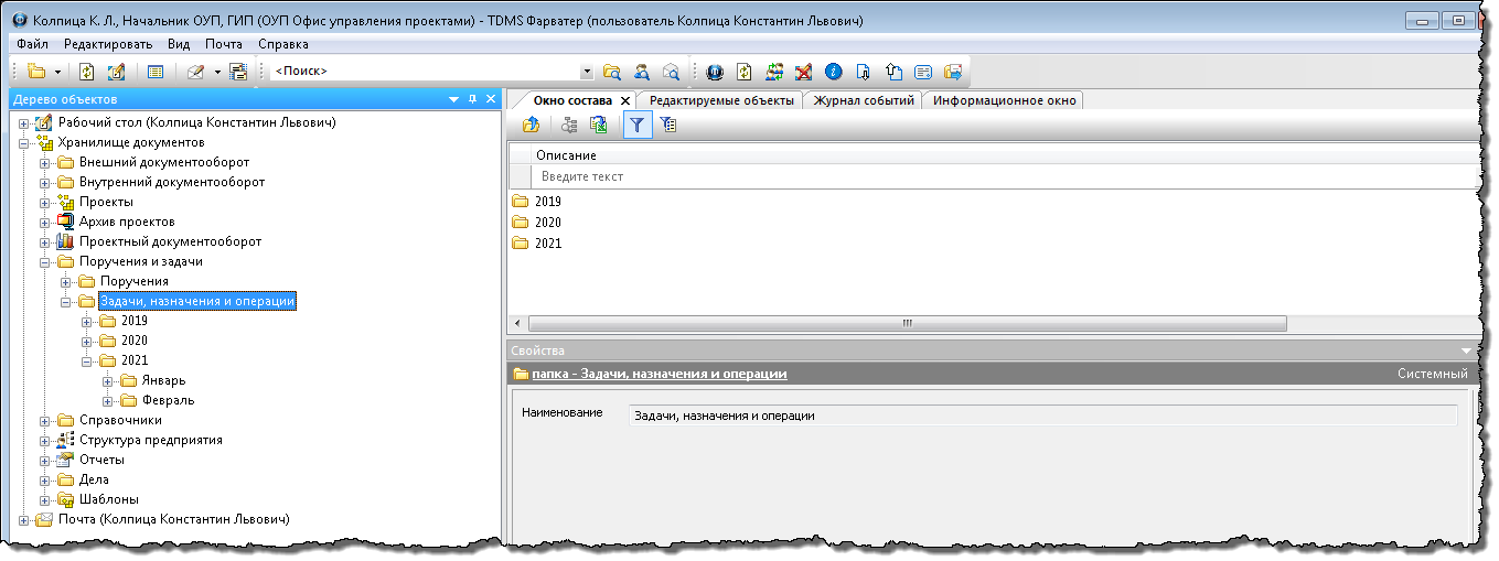 ·Папка с именем месяца - содержит объекты, сроки по которым соответствуют данному месяцу года. Формируется автоматически.