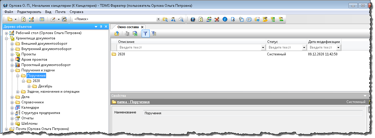 В одноименном подразделе хранятся все созданные в системе Поручения (возможность просмотра объектов зависит от прав пользователя в системе).