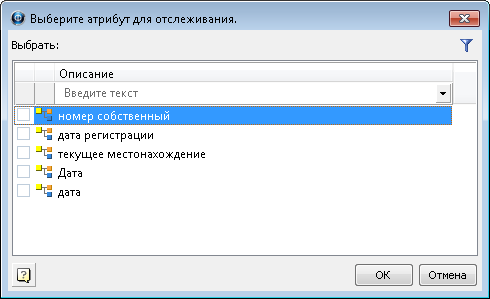 4. Если ранее был выбран тип подписки Подписчик на изменение атрибутов, то в открывшемся окне выбрать требуемые для отслеживания атрибуты и закрыть окно кнопкой ОК. Если данный тип подписки не выбирался, то перейти к п. 5.