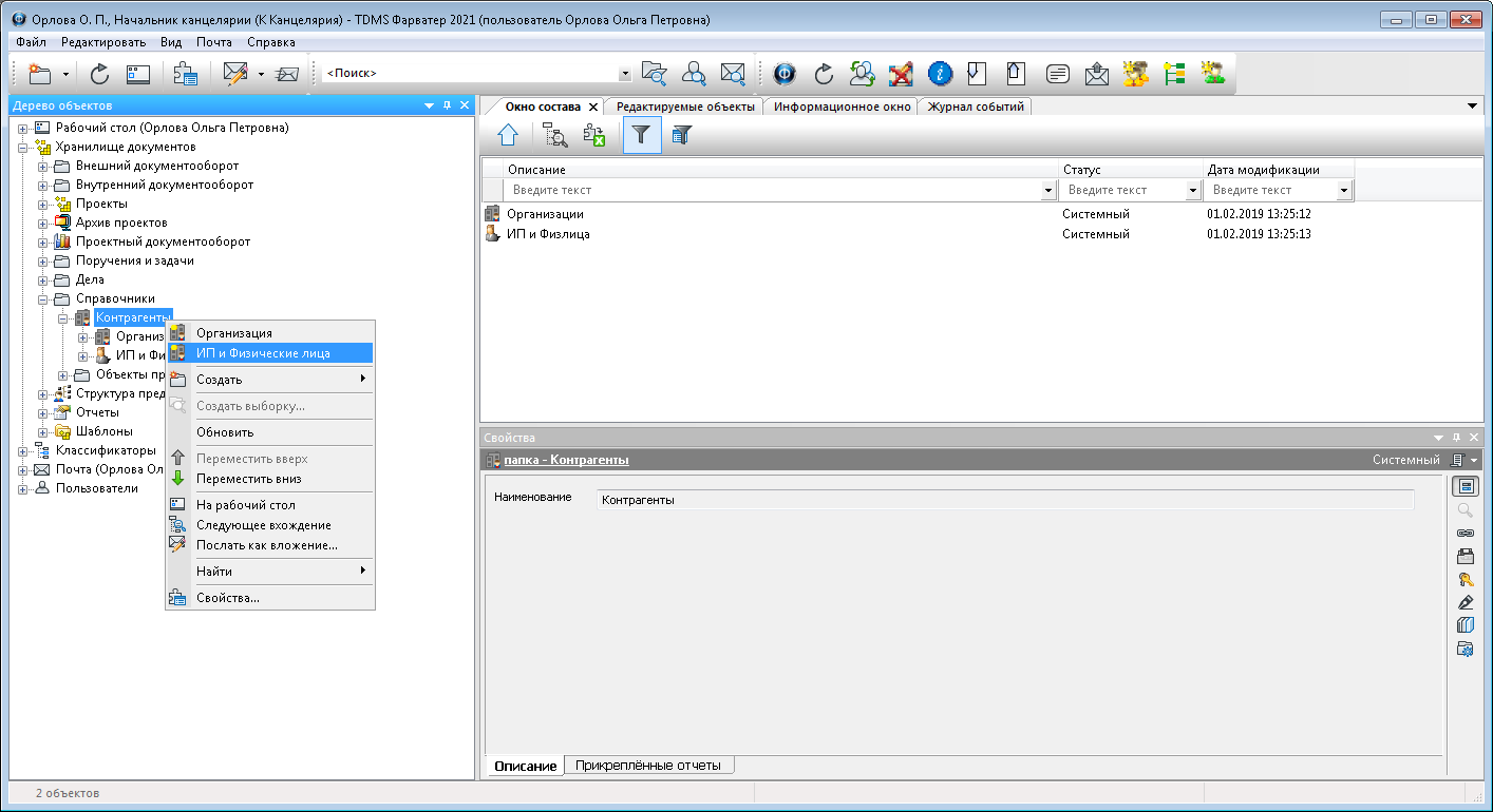 ·На подразделе Контрагенты вызвать контекстное меню и выбрать