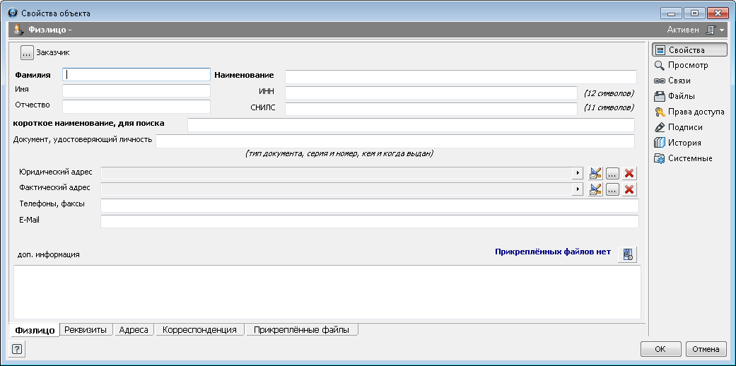 9. Закрыть диалоговое окно Свойств Физлицо кнопкой ОК в правом нижнем углу.