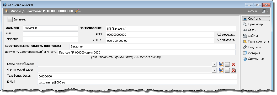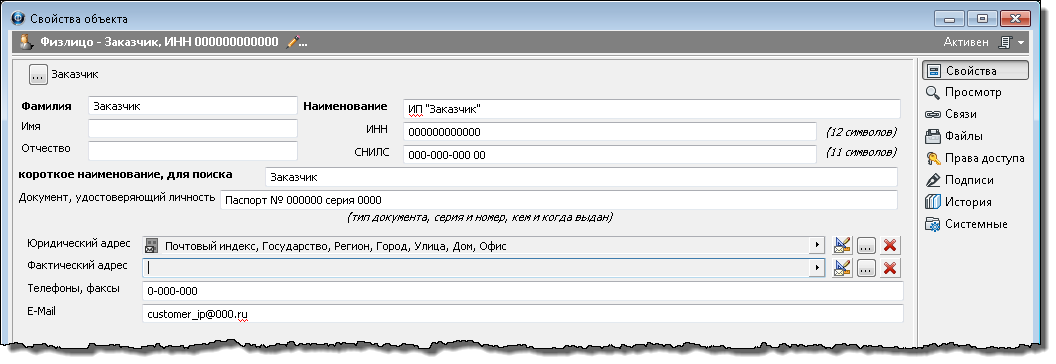 ![]() ·Созданный адрес будет введен в поле Юридический адрес окна Физлицо;