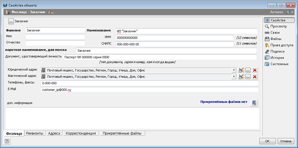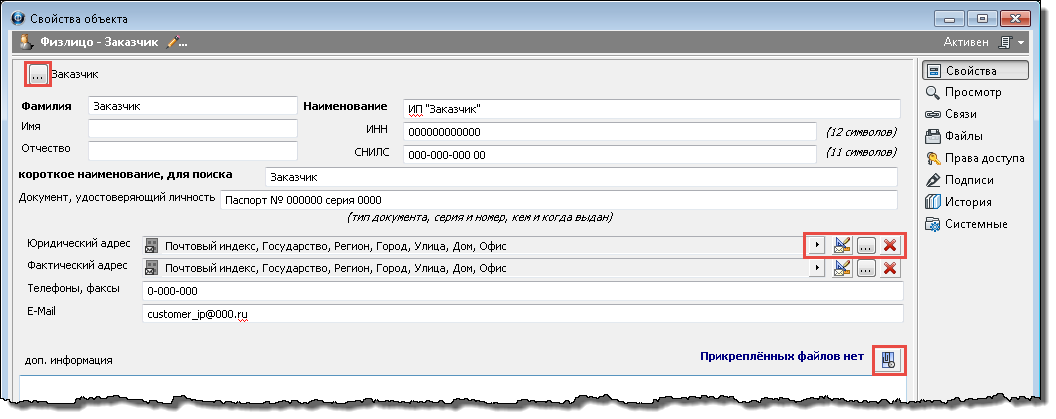 ·Телефоны, факсы - поле с номерами телефонов и факсов физлица;