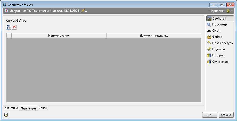 ![]() 2. В открывшемся окне Запрос перейти на вкладку Описание.