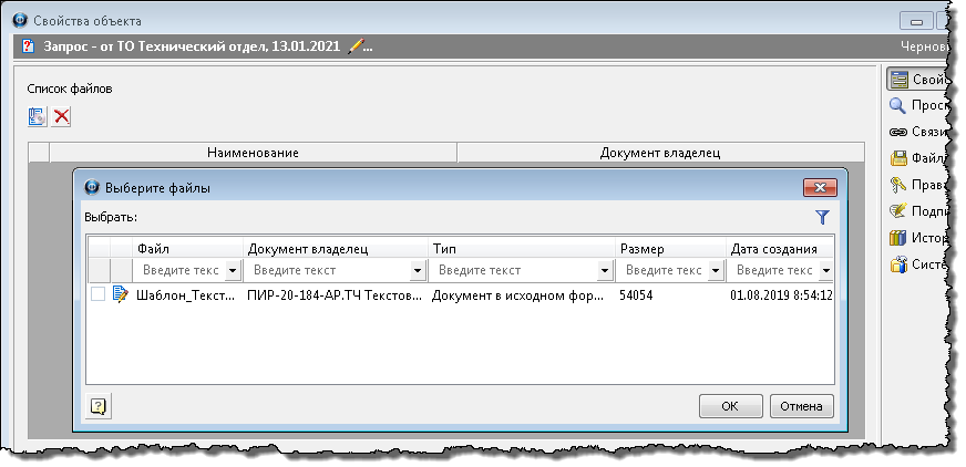 ·Для предварительного просмотра имен файлов, прикрепленных к документу, необходимо выделить в таблице сам документ и нажать кнопку